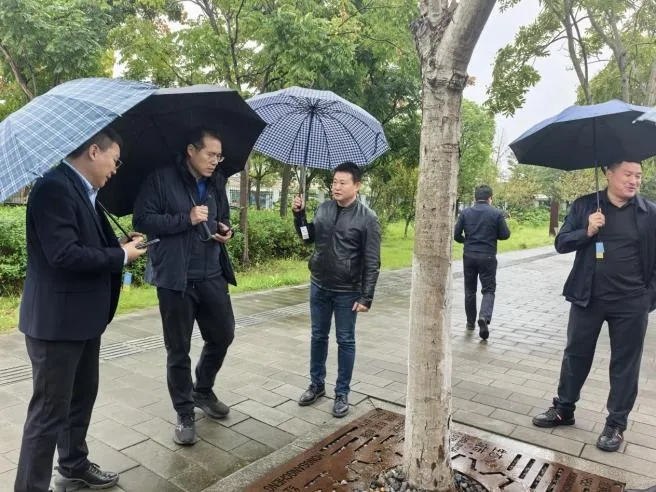 在紅鋼城大街,考察組對(duì)工業(yè)風(fēng)街道家具、銹蝕鋼板打造的特色樹(shù)穴蓋板與路緣石、以及公交站臺(tái)無(wú)障礙設(shè)施及帶狀排水溝的人性化設(shè)計(jì)高度肯定;來(lái)到和平大道,考察組對(duì)特色路緣石、造型路燈與林蔭綠化充分贊賞,強(qiáng)調(diào)街道設(shè)施需與周邊環(huán)境深度融合;在新建成的右岸大道南延段,考察組肯定道路鋪裝、檢查井、雨水口的建設(shè)品質(zhì),著重強(qiáng)調(diào)精細(xì)化施工對(duì)工程質(zhì)量的關(guān)鍵作用;走進(jìn)中山大道,考察組對(duì) “公交優(yōu)先、還綠于民” 的建設(shè)理念高度認(rèn)同,指出武漢與雄安在街道空間一體化設(shè)計(jì)領(lǐng)域有諸多共通點(diǎn),具備廣闊的互學(xué)互鑒空間??疾烊?,武漢市政院團(tuán)隊(duì)詳細(xì)介紹了各項(xiàng)目的設(shè)計(jì)思路與建設(shè)歷程。
