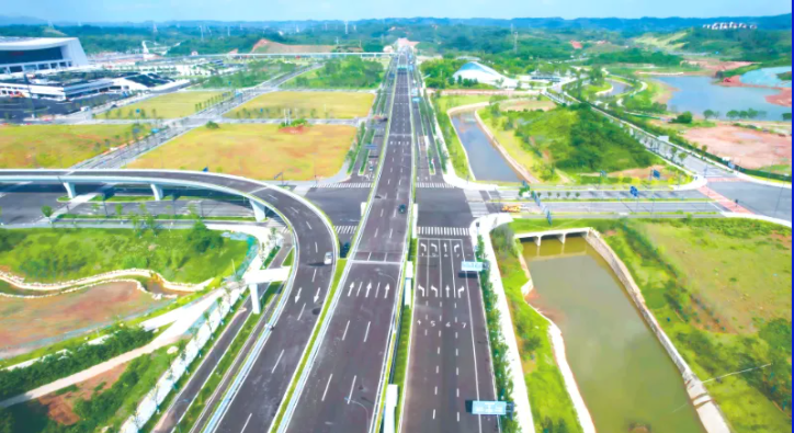 作為宜昌中心城區(qū)“四縱六橫”快速路網中跨江環(huán)線的關鍵組成部分,花溪路自規(guī)劃之初便肩負著連通高鐵新城與主城區(qū)、優(yōu)化城市空間布局的重要使命。項目全長約13.84公里,按照城市快速路標準精心打造,設計時速達80公里,主線采用雙向6車道布局,并在人口密集、交通需求較大的區(qū)域增設4條輔道,實現(xiàn)主線快速通行與輔道便捷接駁的高效銜接。同時,道路巧妙串聯(lián)現(xiàn)有小鴉路、峽州大道及沿江方向快速通道,最終接入昌磷路,形成“內外聯(lián)通、縱橫交織”的交通網絡,進一步織密宜昌快速交通骨架。