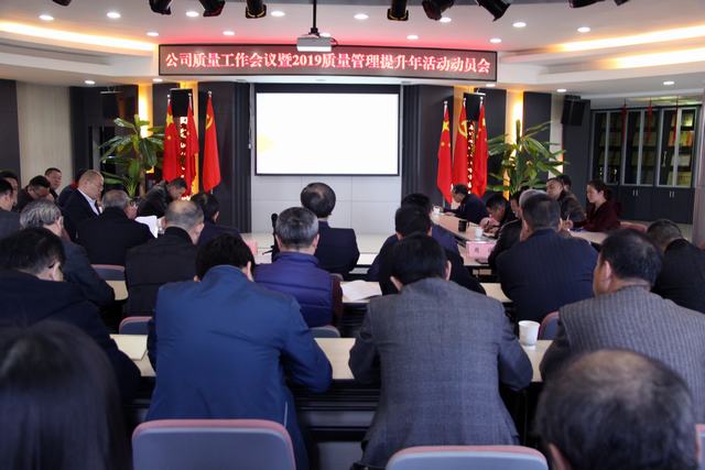 ??? 3月15日下午,公司在西二樓會議室召開質量工作會議暨2019質量管理提升年活動動員會,會議由公司副總經理周俊主持,公司領導班子、總經理助理、相關部門行政管理和技術管理人員以及質量檢查組成員參加了本次會議。