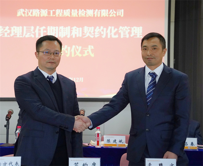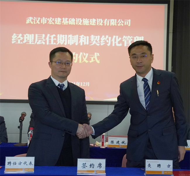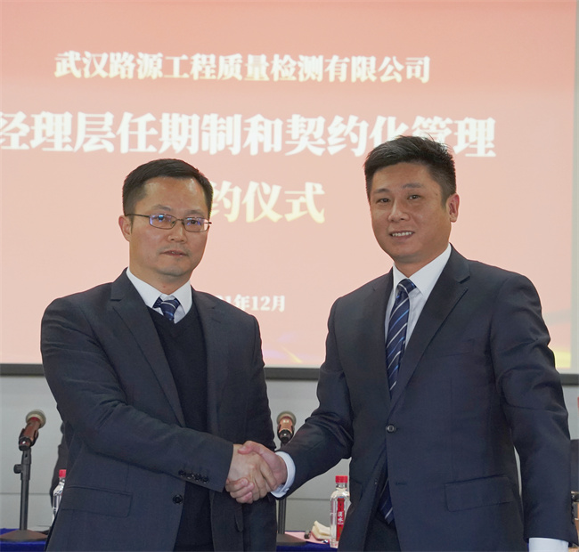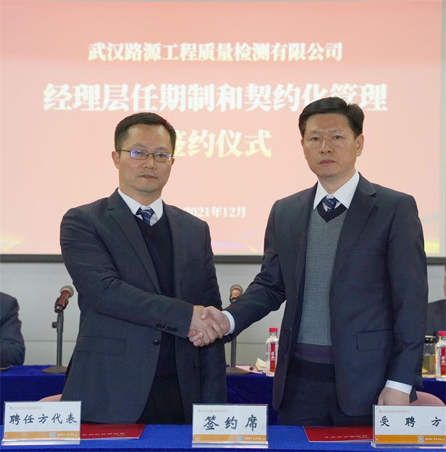 隨后,公司黨委書(shū)記、董事長(zhǎng)武興治與黨委副書(shū)記、總經(jīng)理陳建斌簽署崗位聘任協(xié)議書(shū),陳建斌分別與公司經(jīng)理層成員和所屬武漢路源工程質(zhì)量檢測(cè)有限公司、武漢市宏建基礎(chǔ)設(shè)施建設(shè)有限公司經(jīng)理層成員簽署崗位聘任協(xié)議書(shū)。