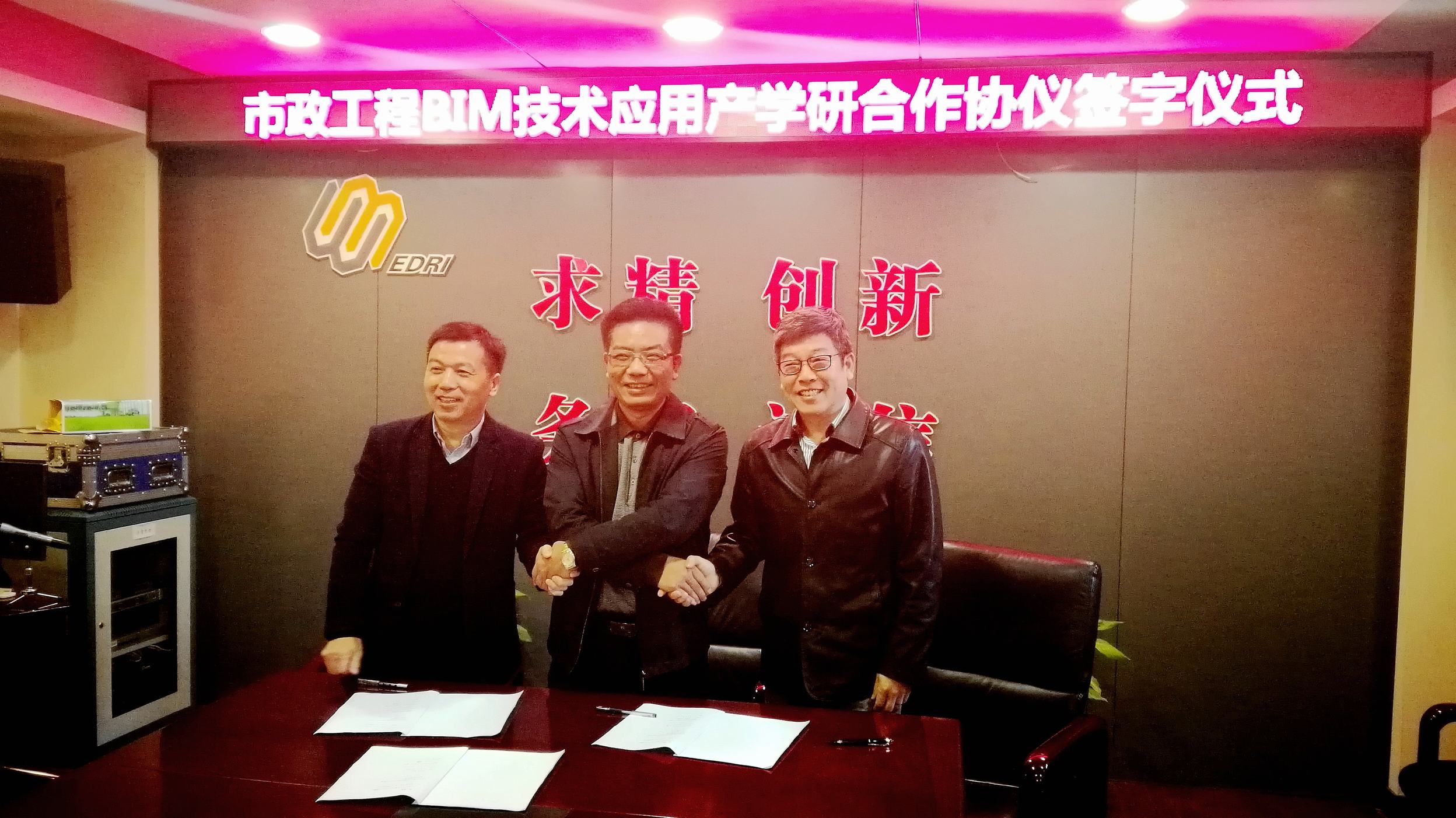 ??? 公司副總經(jīng)理周俊、武漢工程大學資源與土木工程學院院長盧海林、上海同筑信息科技有限公司總經(jīng)理劉艇代表各自單位在合作協(xié)議上簽字。