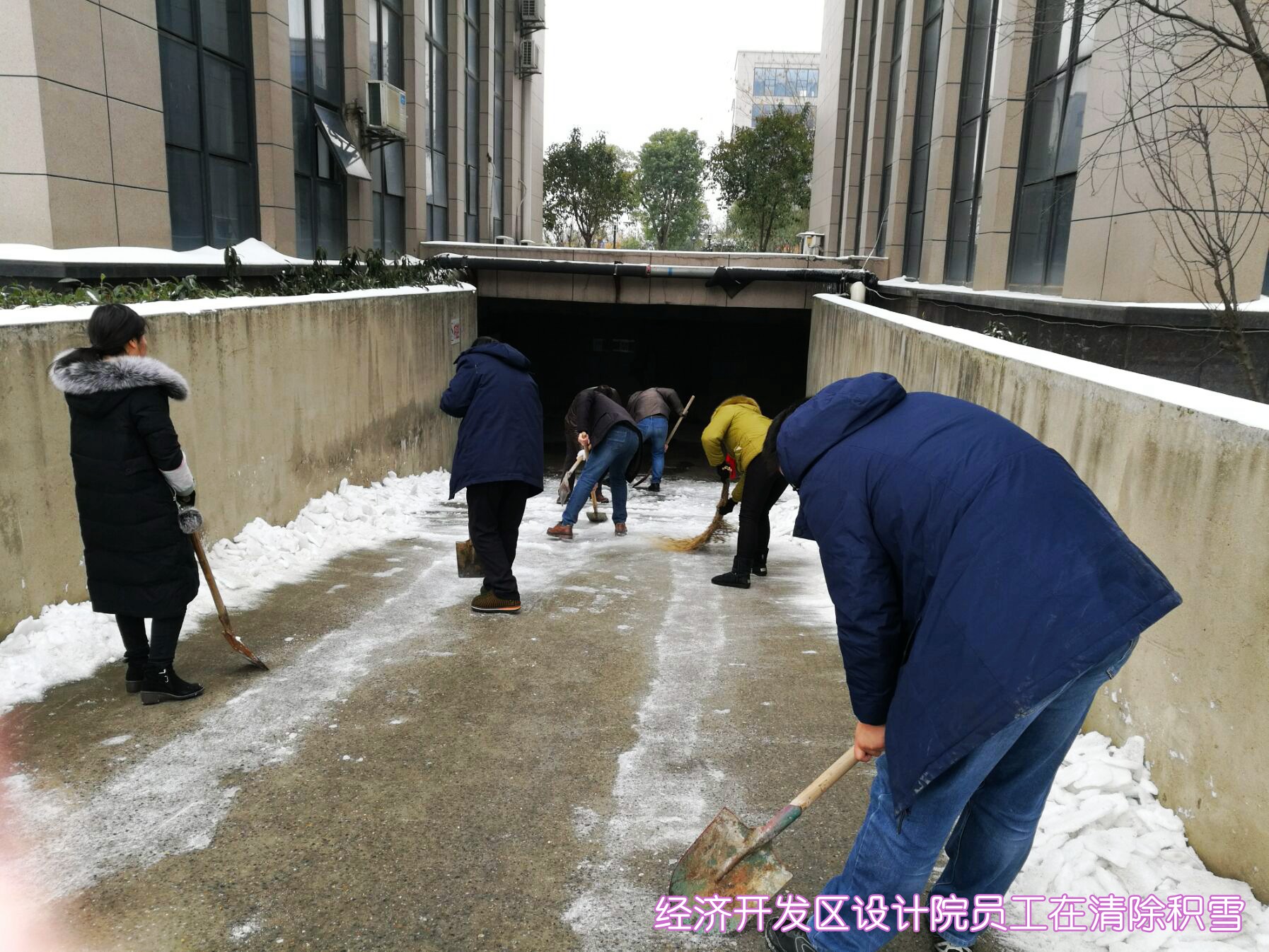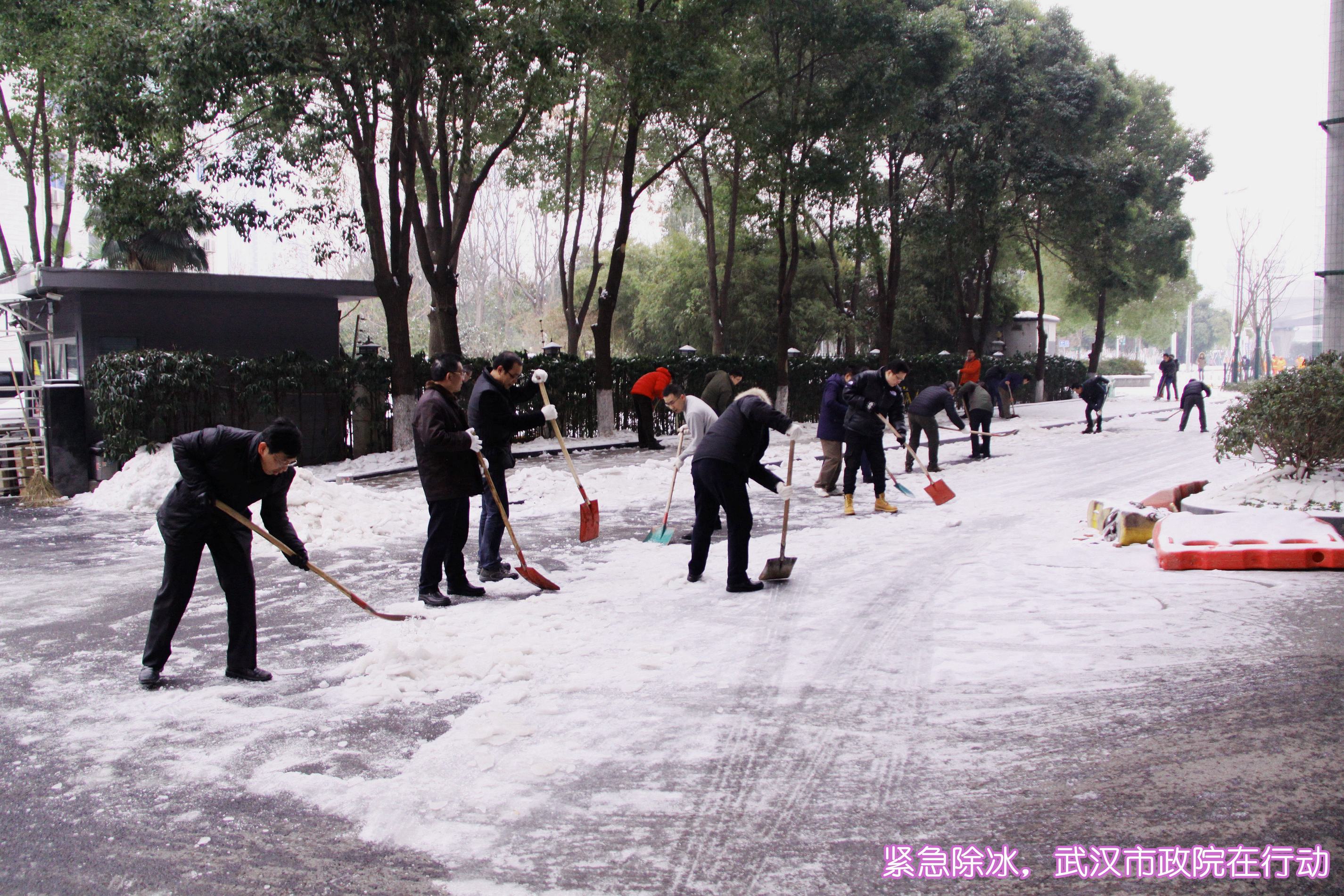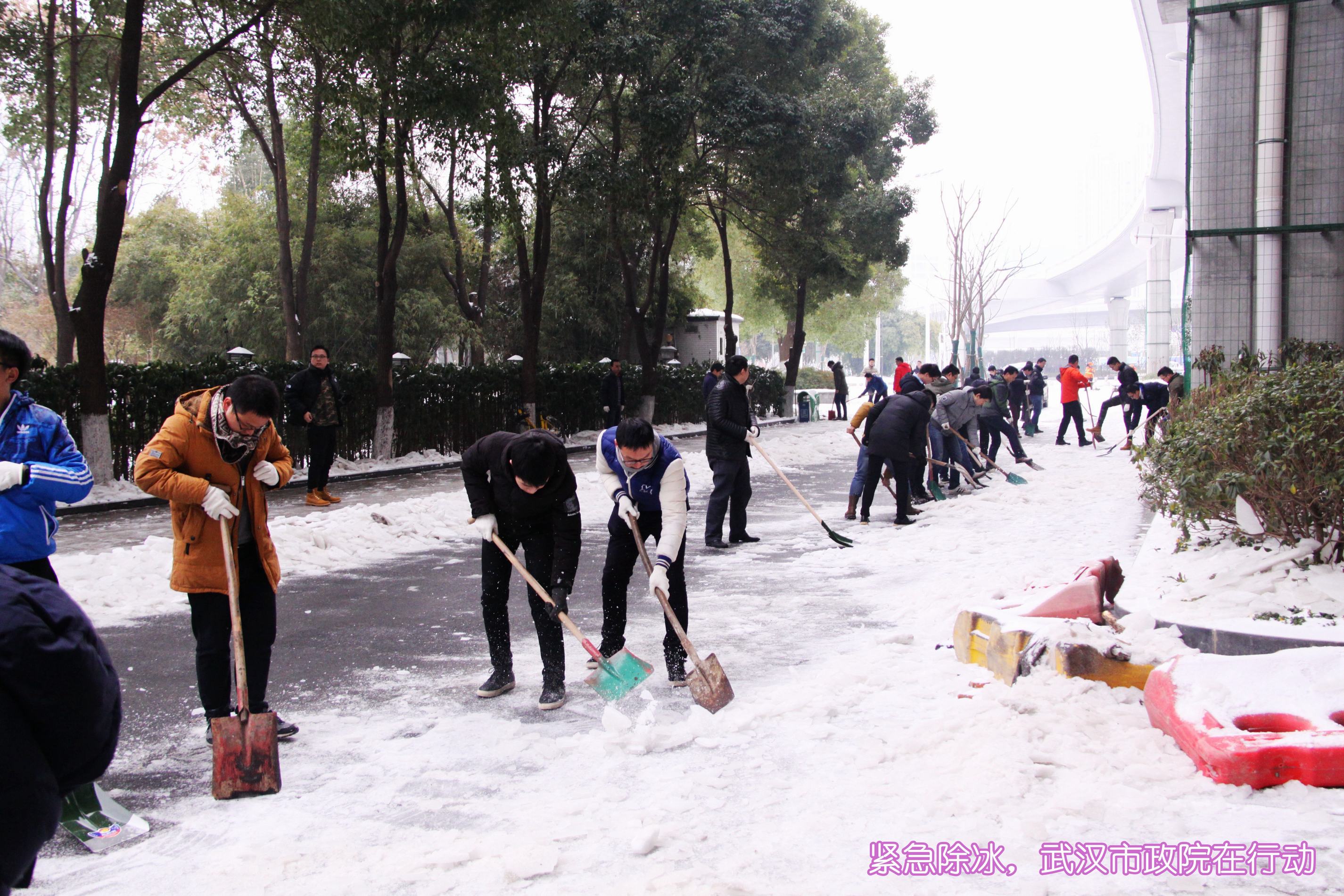 ??? 1月28日,武漢市政院的全體員工響應(yīng)市政府緊急通知的要求,放棄了周末休息時(shí)間,一大早便紛紛趕到公司,投入到抗擊冰雪保暢通的行動中。由于連日來江城氣溫較低,雪落到路面上已經(jīng)形成了厚厚的冰層,為員工們鏟除冰雪帶來了極大的難度。在公司領(lǐng)導(dǎo)的帶領(lǐng)下,大家有的拿起鐵鍬鏟除冰層,有的拿著鋤鎬,敲碎路面上的堅(jiān)冰,有的則拿起掃帚,掃凈路面的冰雪殘?jiān)K^人多力量大,不多時(shí),公司周邊道路及人行道上的冰雪便被鏟除干凈。